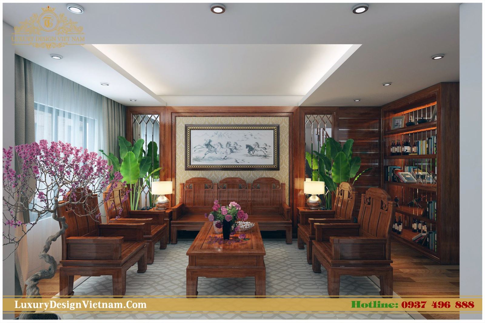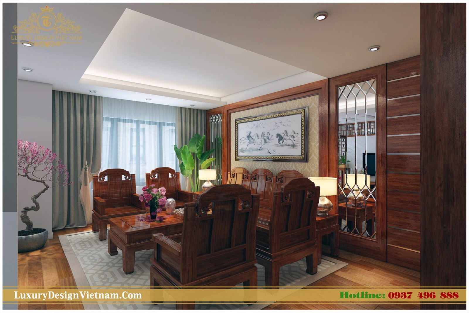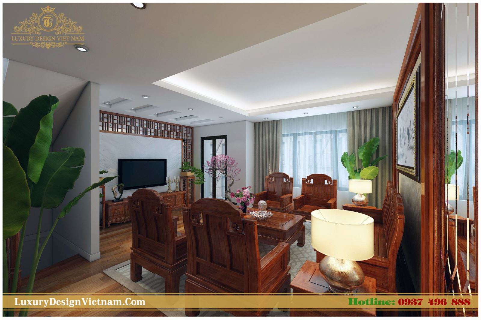 Biệt thự nhà Chú Tâm thuộc khu đô thị KĐT Ecolife Tây Hồ, nơi đây có không khí thoáng đãng, trong lành. Luxury Design Việt Nam giới thiệu thiết kế nội thất phong cách á đông & cổ điển tại dự án.